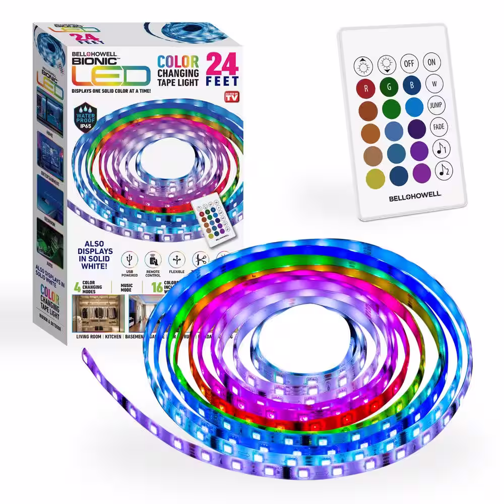 Bell + Howell 24 ft. 95 Lumens 4-Watt 16-Colors 4 Modes 222 LEDs Strip Light Tape Light with Remote Control