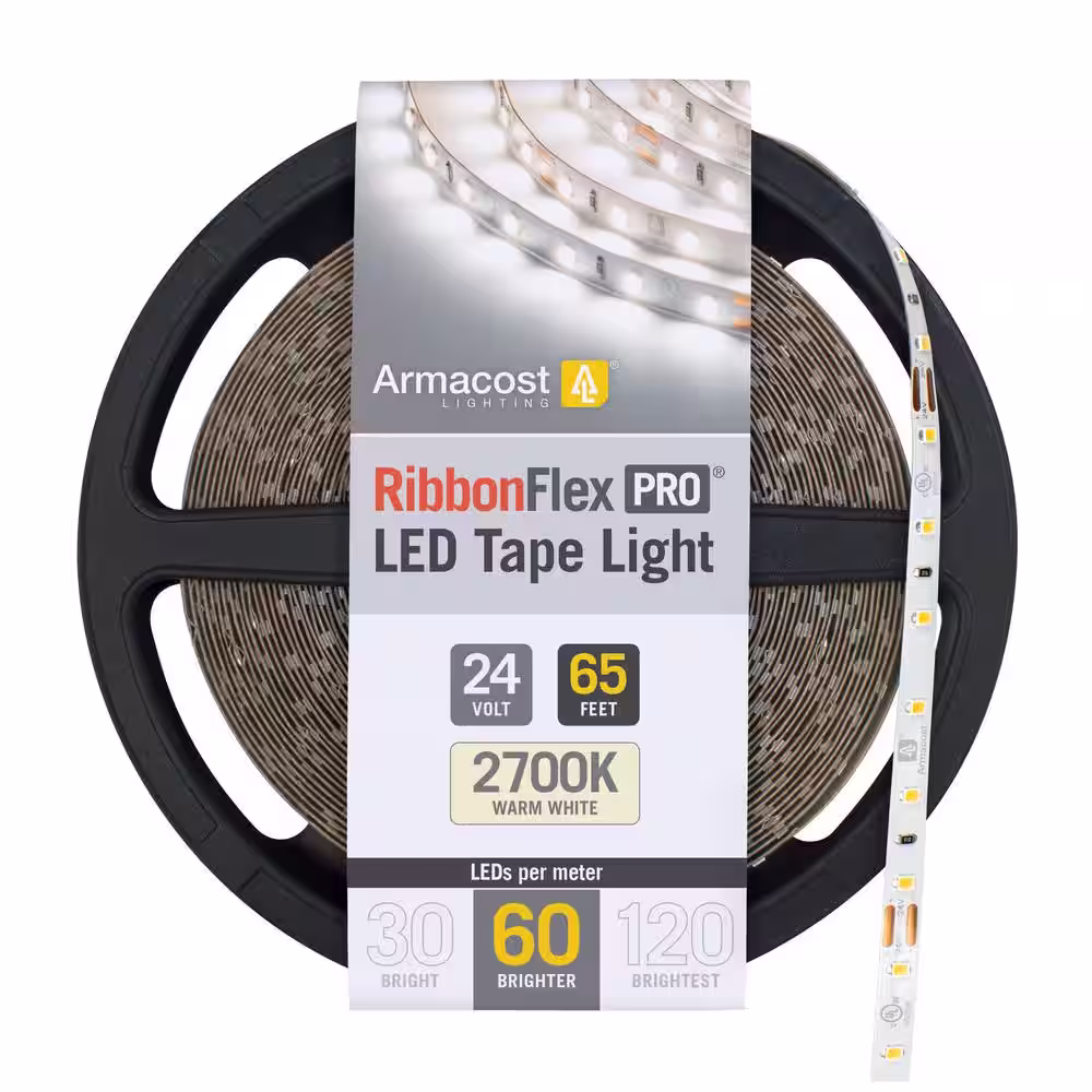 Armacost Lighting Ribbon Flex Pro 65.6 ft. Hardwired 2700K Warm White 24-Volt 60 LED Integrated LED Under Cabinet Strip Light 20M