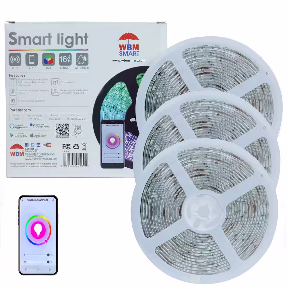 WBM SMART 196.85 in. Multi-Color, Indoor and Outdoor LED Strips Light Lamp, Adjustable Brightness (Pack of 3)