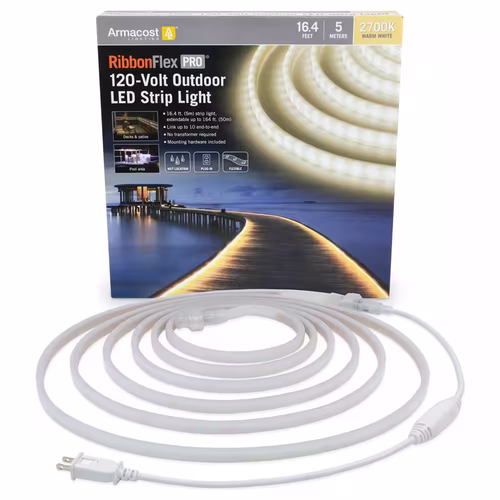 Armacost Lighting RibbonFlex Pro Outdoor 16.4 ft. 120V Plug-In Warm White 2700K LED Rope Light Strip Kit