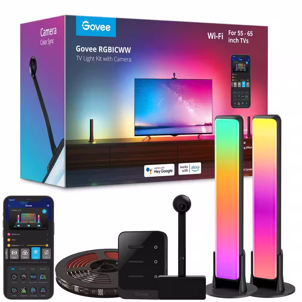 Govee RGBIC TV Backlight Kit 12.5 ft. Smart LED Strip Light with Camera and Two Light Bars for 55-65 in. TVs Wi-Fi Enabled