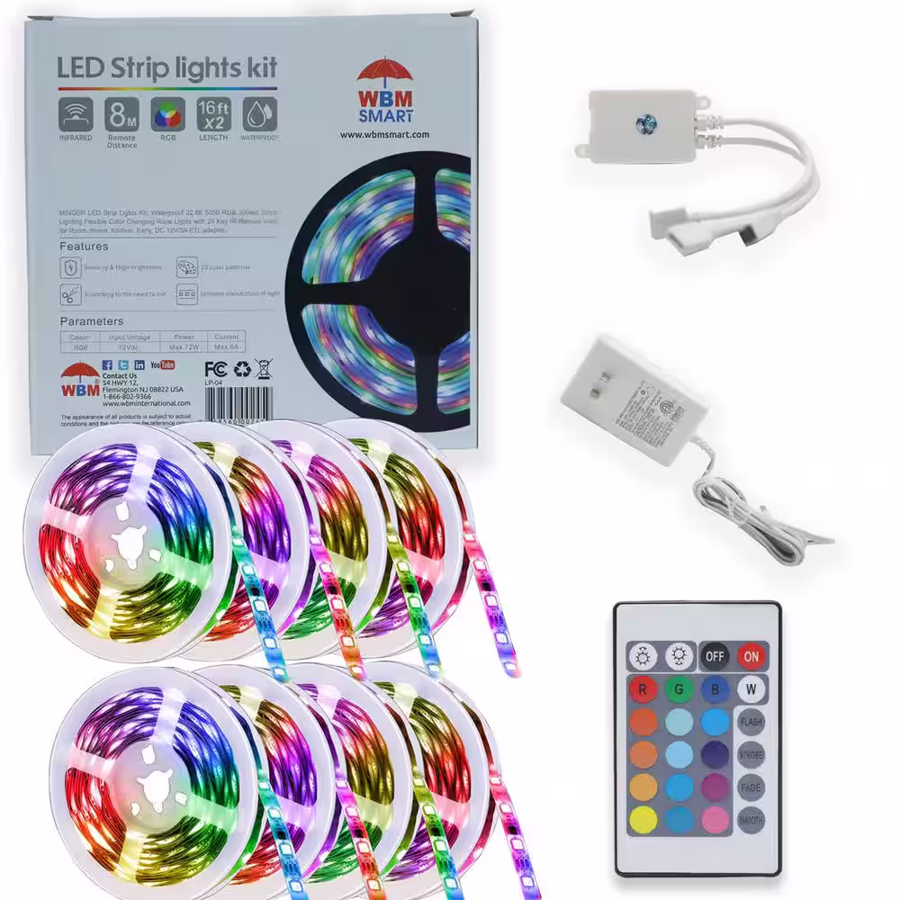 WBM SMART 2 x 5M, 6.14 in. Height LED Light Strips Color Changing RGB Kit with Color Changing RF Remote, Finish: White (Pack of 4)