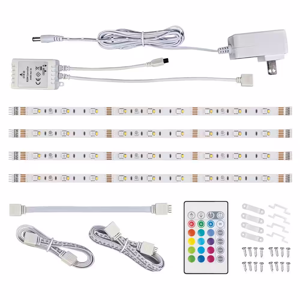 Commercial Electric 12 in. LED Linkable RGBW Flexible Under Cabinet Light Kit (4-Strip Pack)