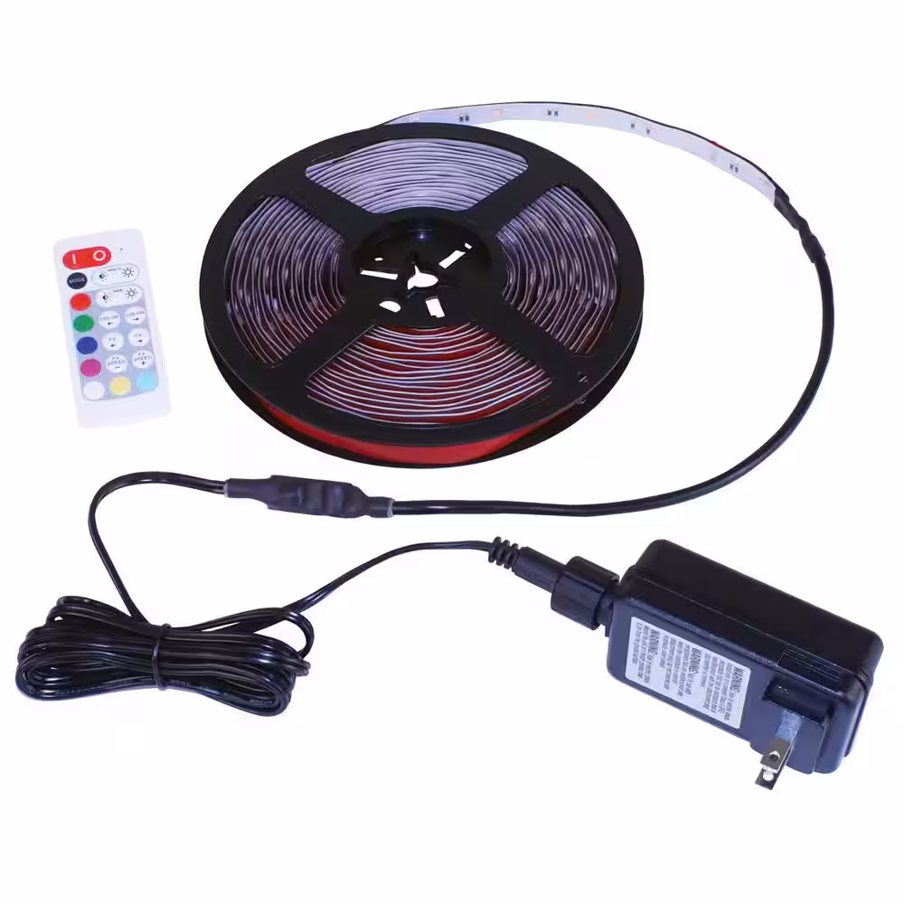 Commercial Electric 24 ft White & Multicolor (RGB+W) Indoor/Outdoor LED Tape Light w/Remote