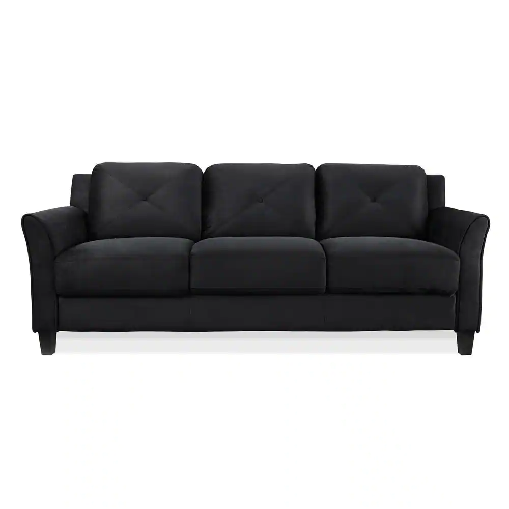 Lifestyle Solutions Harvard 31.5 in. Black Microfiber 4-Seater Tuxedo Sofa with Flared Arms