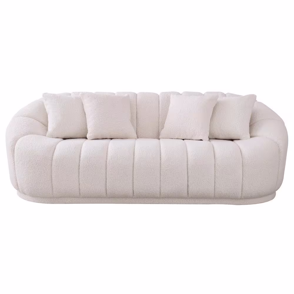 Ashcroft Furniture Co Fullbright 87 in W Round Arm Boucle Fabric Modern Japandi Style Couch in White