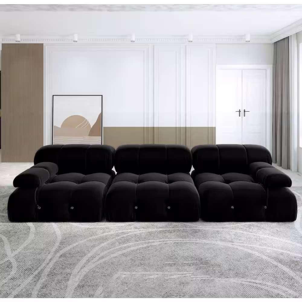 Magic Home 103.95 in. Convertible Modular Minimalist Sofa Free Combination Reversible 3 Seater Velvet Sectional, Black