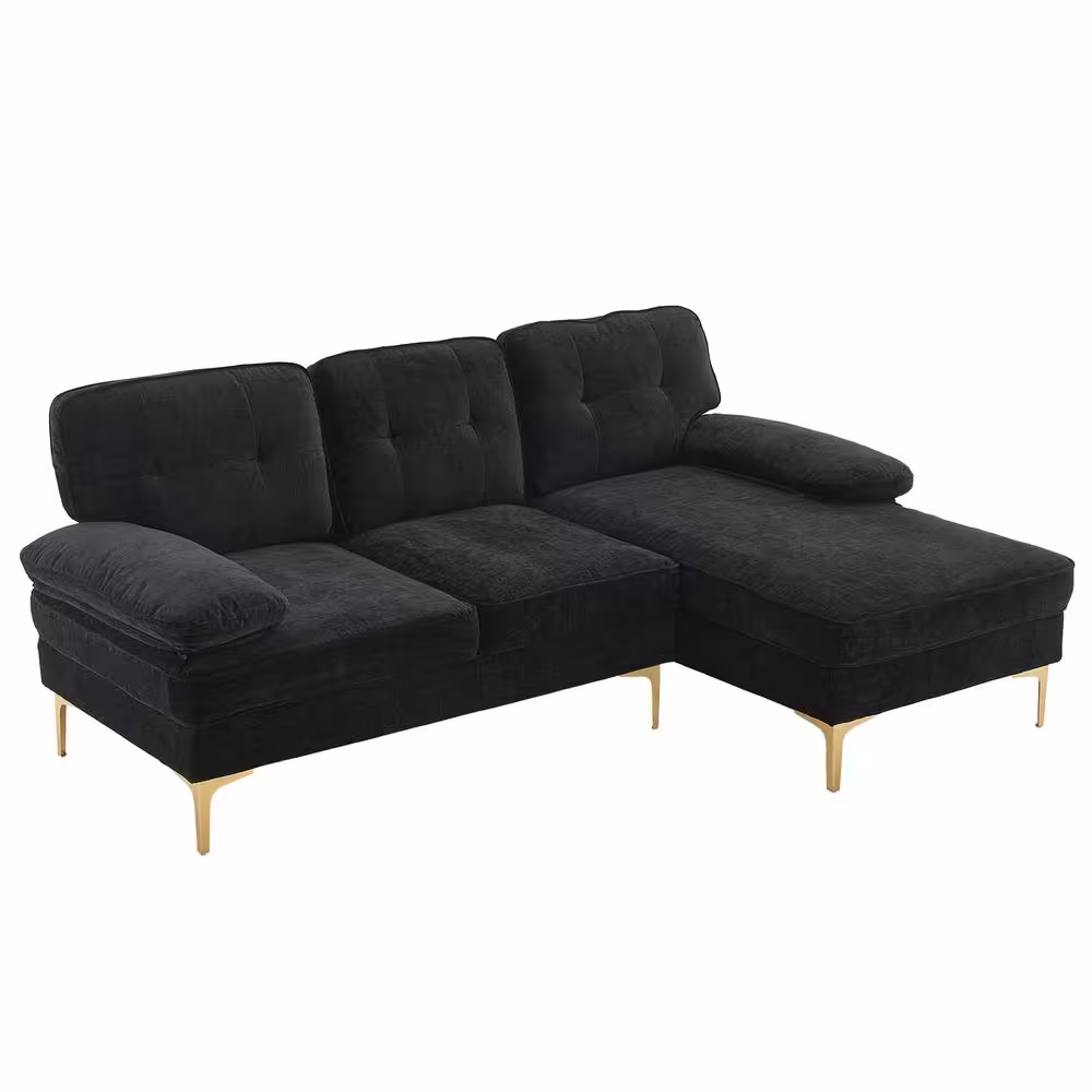 None 83 in. Wide Square Arm Chenille Mid-Century L-Shaped Sofa Black 3-Seats