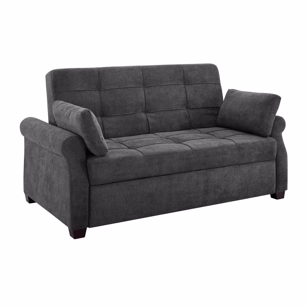 Serta Harrington 37.6 in. Grey Polyester 2-Seater Convertible Tuxedo Sofa with Round Arms