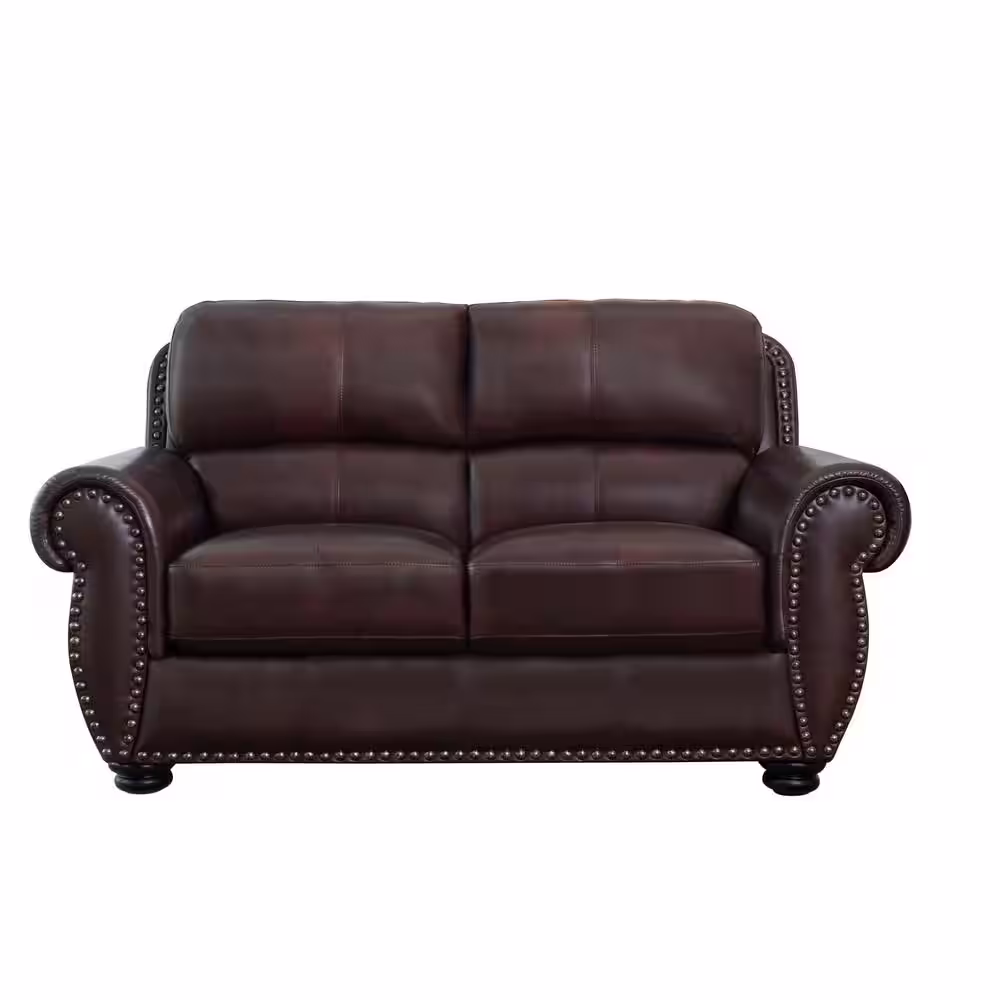 DEVON & CLAIRE 64 in. W Round Arm Aura Straight Leather Loveseat