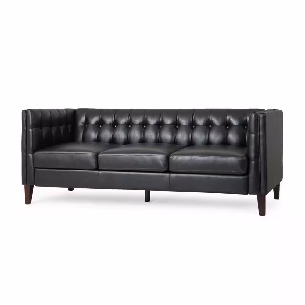 Noble House Sadlier 75.5 in. 3-Seat Square Arm Faux Leather Straight Midnight Black Sofa