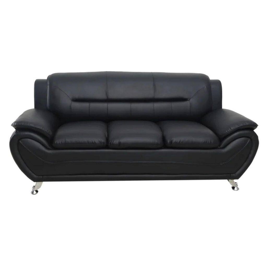 US Pride Furniture Sanuel 79.2 in.W Pillow Top Round Arm Faux Leather Mid-Century straight 3-Seater Sofa in Black