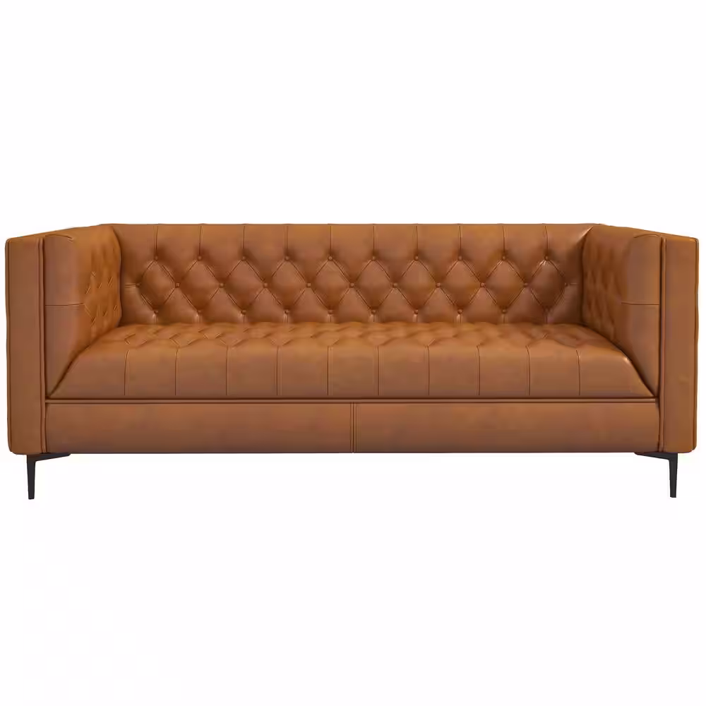 Ashcroft Furniture Co Hector 88 in. W Square Arm Modern Chesterfield Genuine Leather Sofa in Brown Cognac Tan