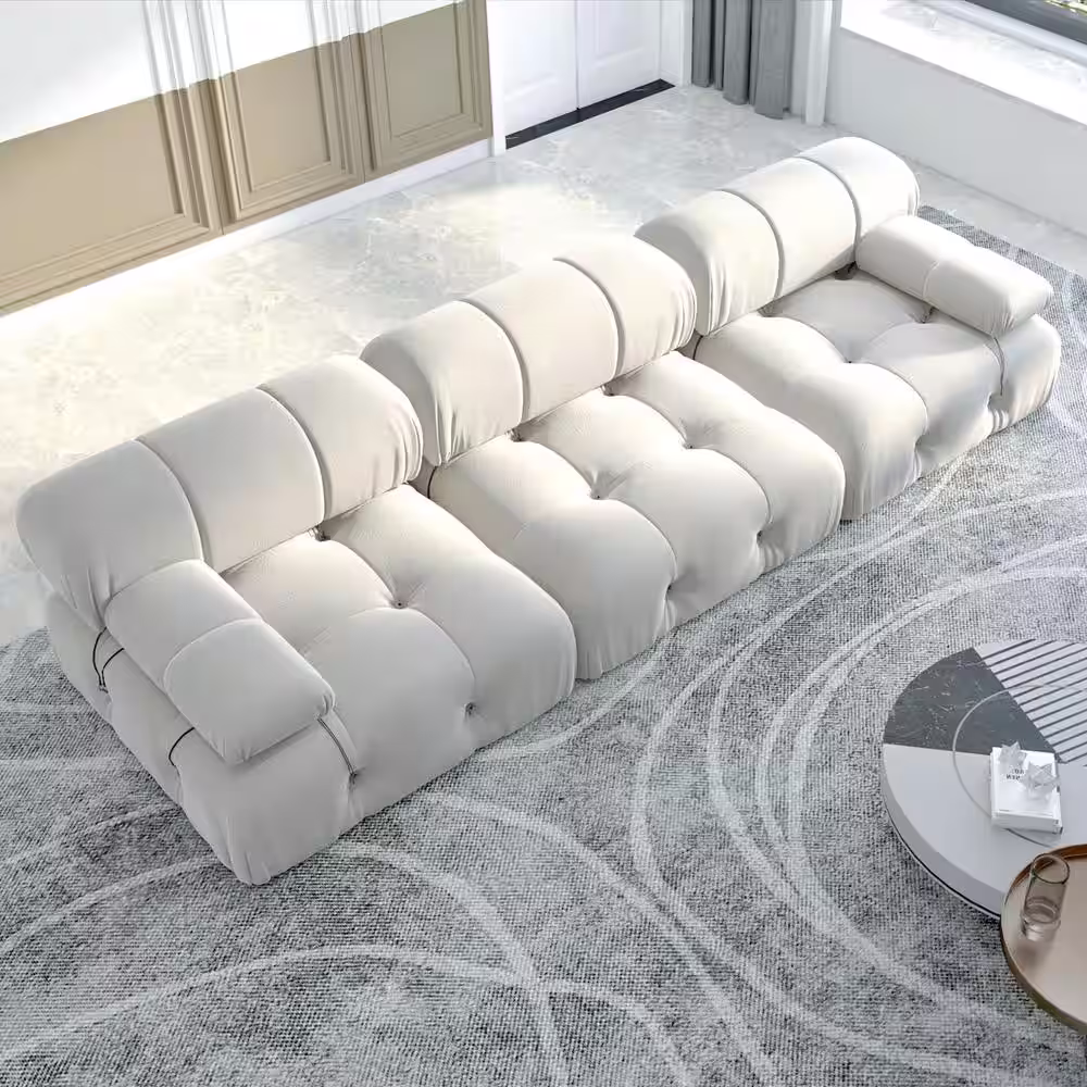 Magic Home 103.95 in. Convertible Modular Minimalist Sofa Free Combination Reversible 3 Seater Velvet Sectional, Beige