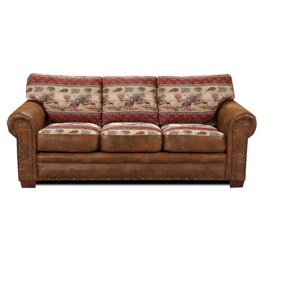 American Furniture Classics Deer Valley Lodge 88 in. W Round Arm Pinto Brown Microfiber Lodge Straight Sofa with Multi-Colored