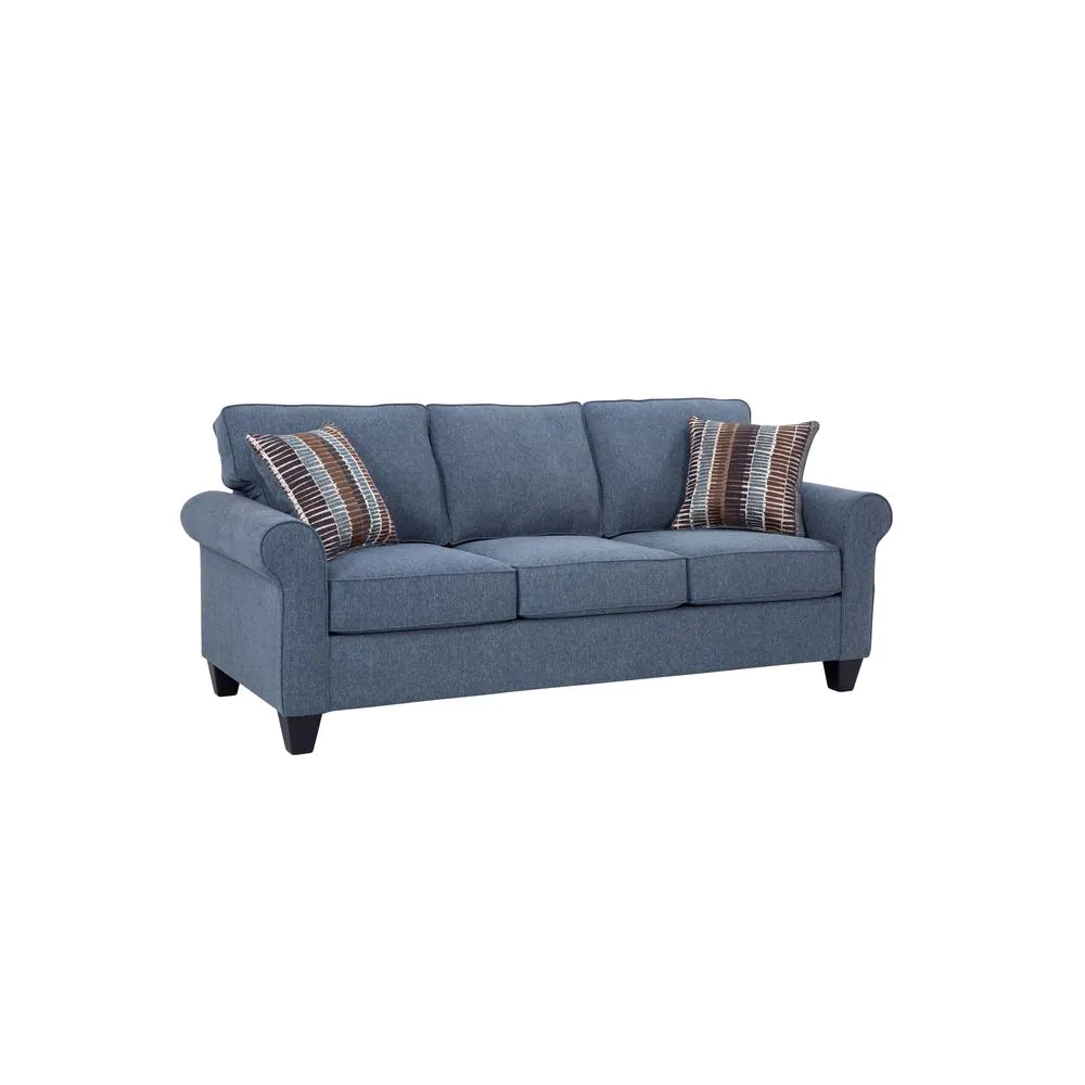 American Furniture Classics Indigo Series 82 in. Wide Rolled Arm Fabric Straight Sofa with 2 Accent Pillows in Indigo Blue