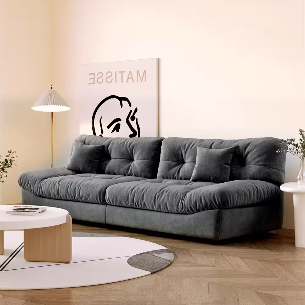 Magic Home 105 in. Anti Cat Scratch Fabric Minimalist Armless 3-Seats Leisure Lazy Sofa Room Furniture Couch for Apartment, Gray