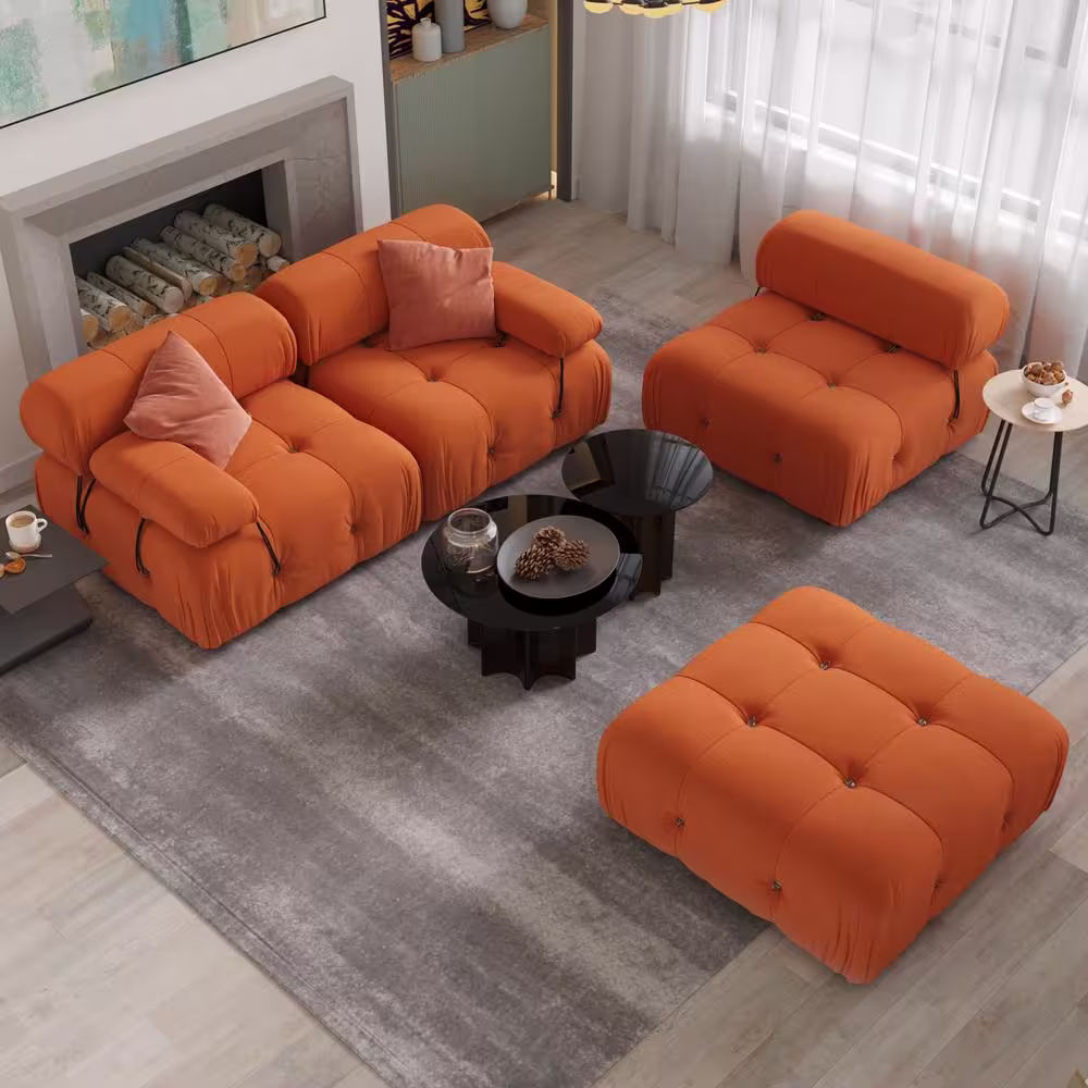 J&E Home 113.4 in. W Orange Square Arm Velvet L-Shaped 3-Seater Free Combination Sofa