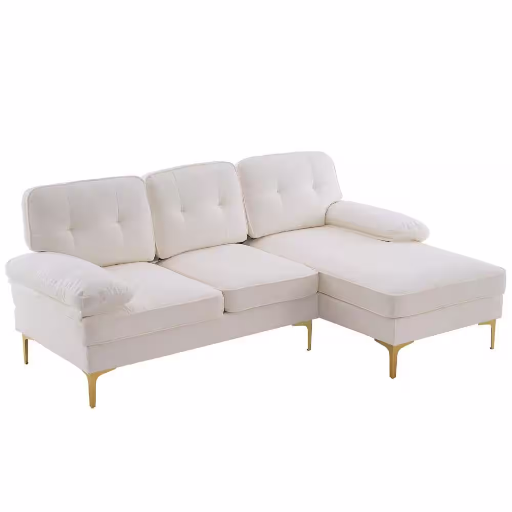None 83 in. Wide Square Arm Chenille Mid-Century L-Shaped Sofa in Beige 3-Seats