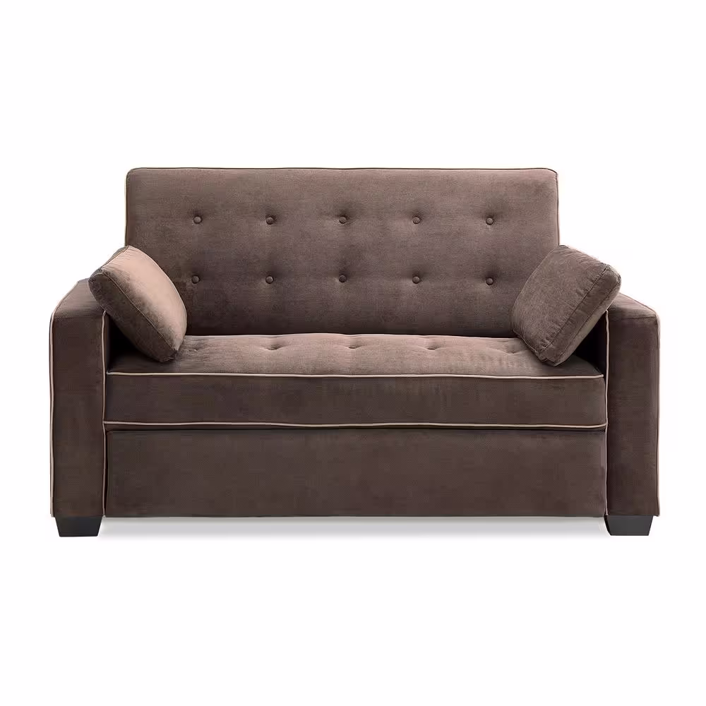 Serta Augustus 37.6 in. Java Polyester 3-Seater Convertible Tuxedo Sofa with Square Arms