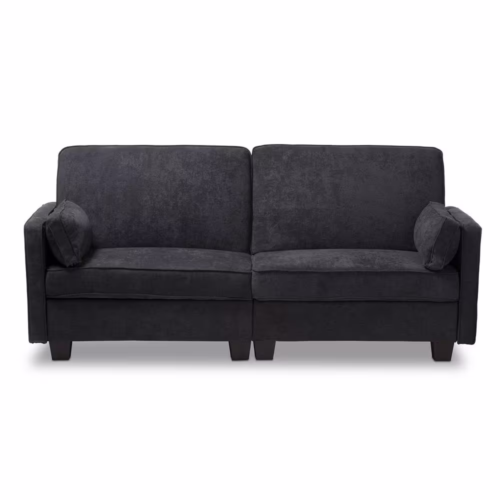Baxton Studio Felicity 82.7 in. Dark Gray Polyester 3-Seater Twin Sleeper Sofa Bed with Square Arms