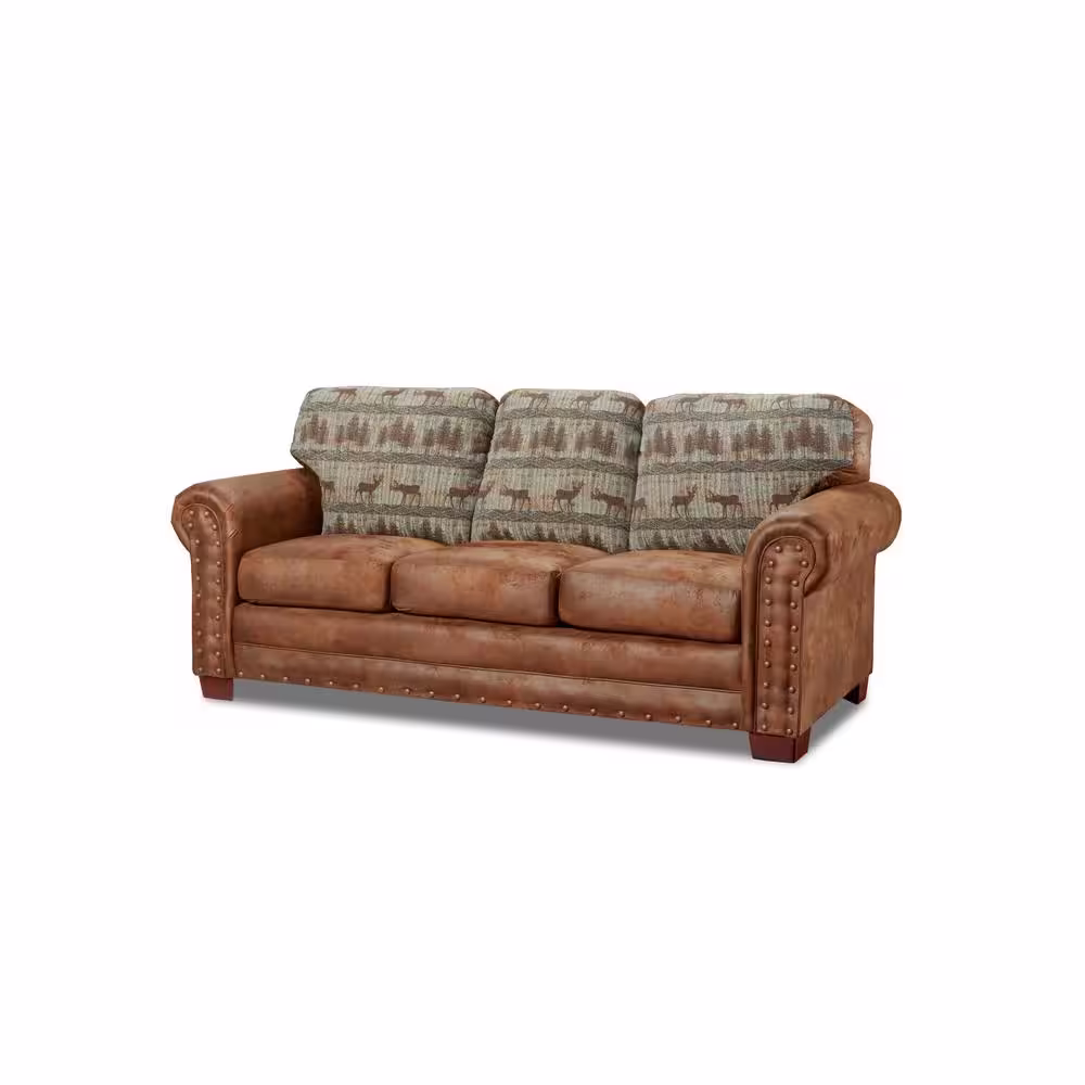 American Furniture Classics Deer Teal Lodge 88 in Brown Microfiber Queen Size Sofa Bed with Nail Head Accents