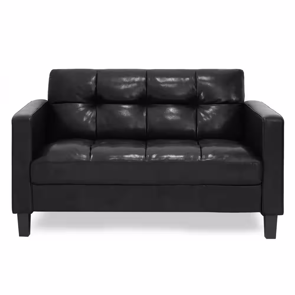 Furinno Brive 54.1 in. Black Tufted Faux Leather 2-Seater Loveseat with Square Arms