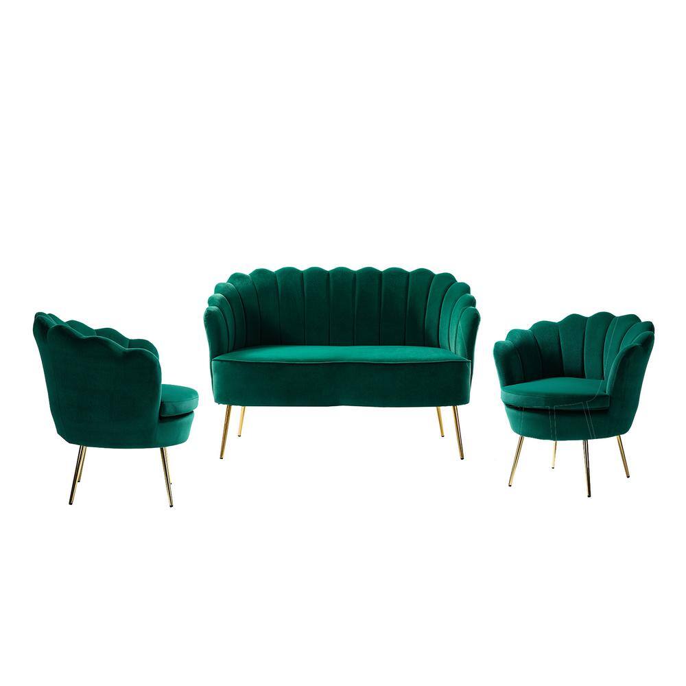 JAYDEN CREATION Yeran 52 in. 3 Piece Green Living Room Set