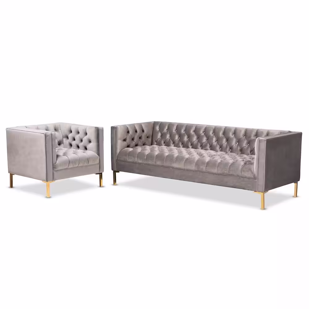Baxton Studio Zanetta 2-Piece Gray and Gold Living Room Set