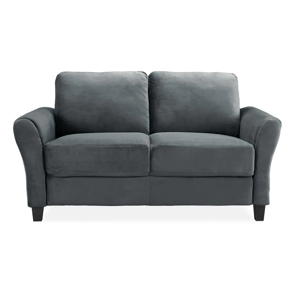 Lifestyle Solutions Wesley 31.5 in. Dark Grey Microfiber 2-Seater Loveseat with Round Arms