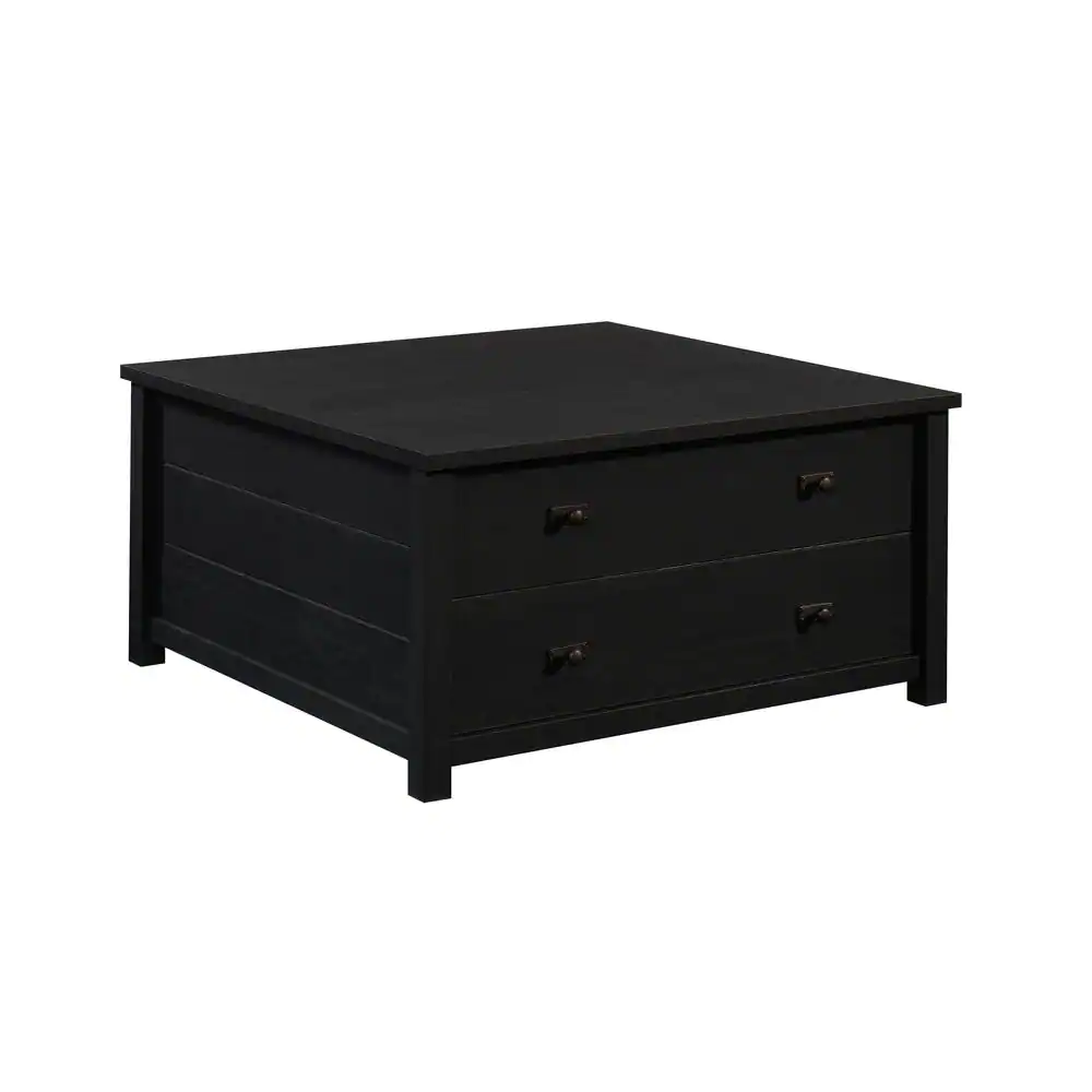 SAUDER Cottage Road 32.441 in. Raven Oak Square Engineered Wood Coffee Table with Drawers