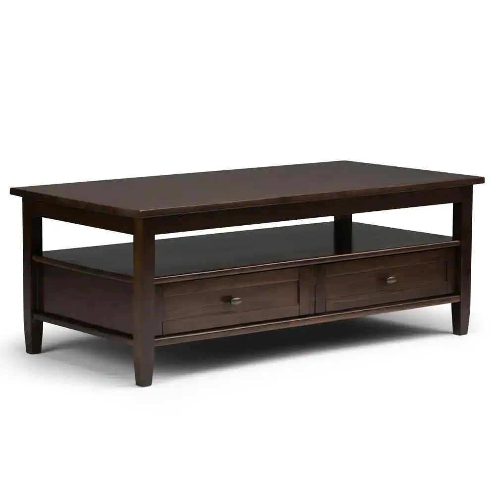 Simpli Home Warm Shaker Solid Wood 48 in. Wide Rectangle Transitional Coffee Table in Tobacco Brown