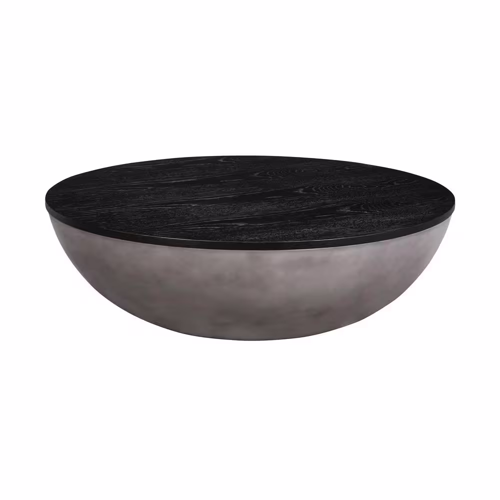 Armen Living Melody 48 in. Black Round Oak Wood Coffee Table