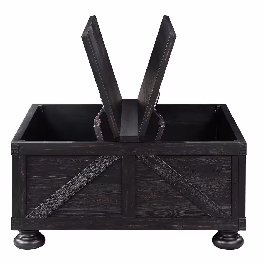 Furniture of America Medrum 36 in. Antique Black Square Solid Wood Coffee Table with Storage