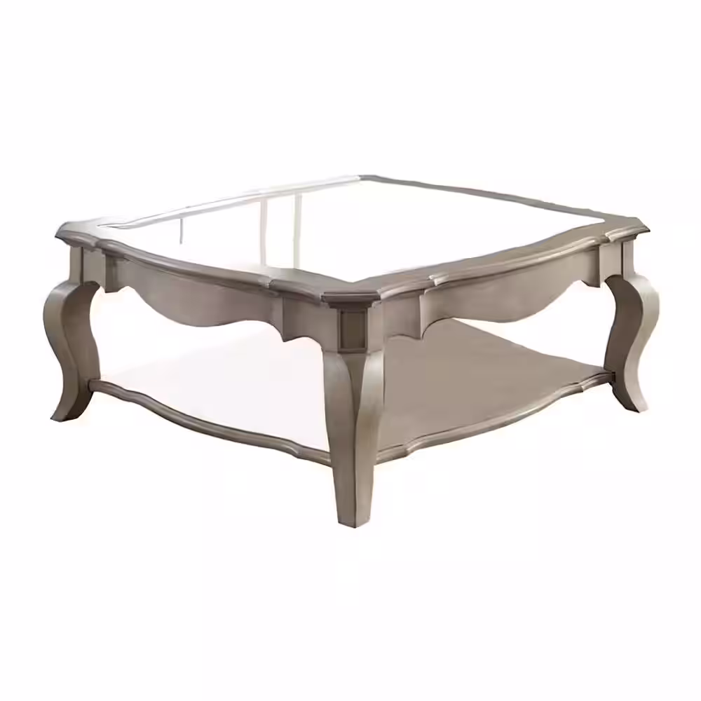 Acme Furniture Chelmsford 42 in. Antique Taupe and Clear Glass Small Square Glass Coffee Table