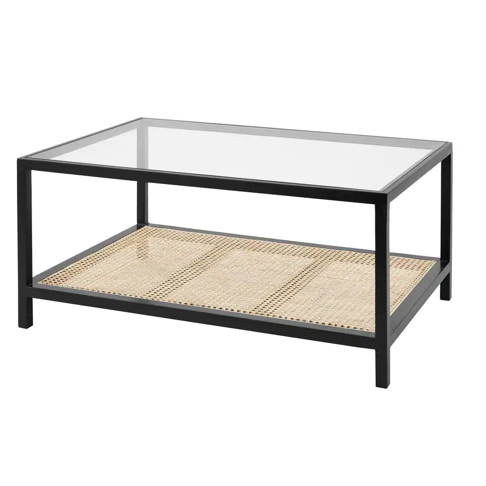StyleWell Odell Cane Coffee Table in Black/Rattan (36" W x 16" H)