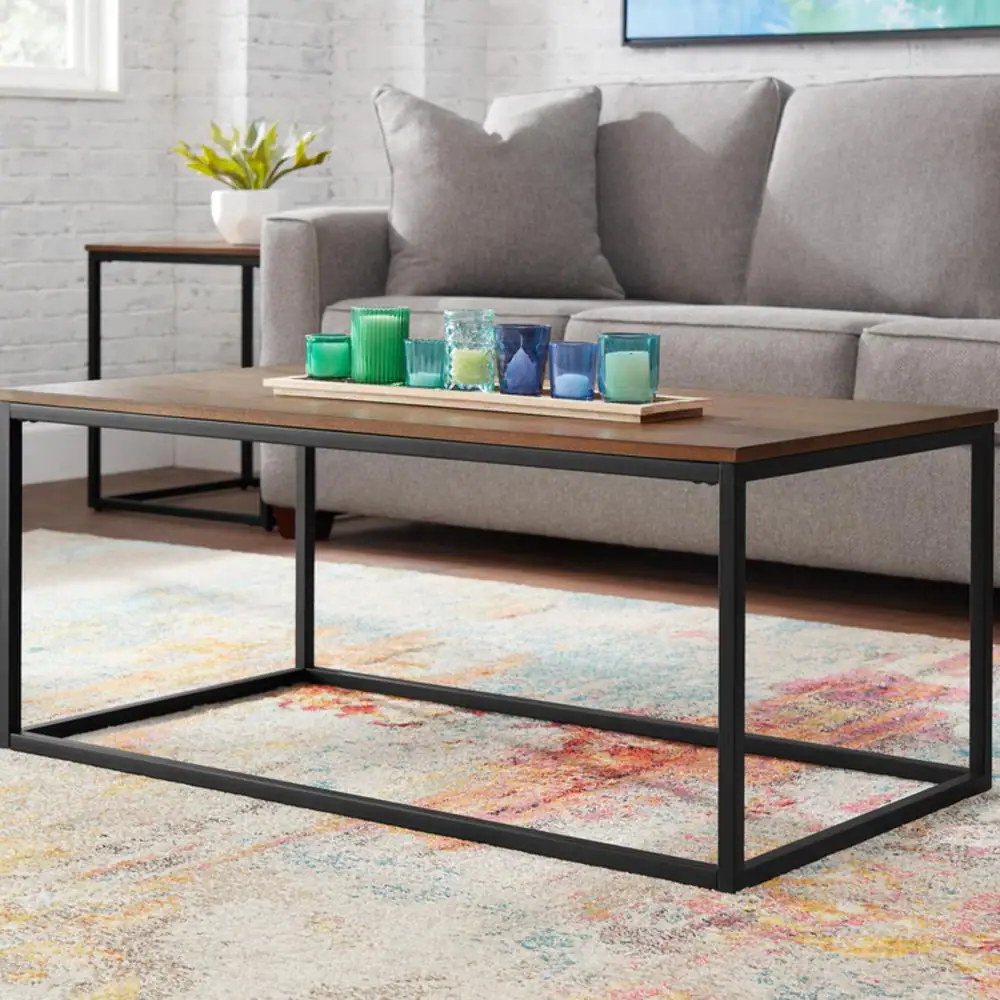 StyleWell Donnelly Black Rectangular Coffee Table with Haze Wood Top