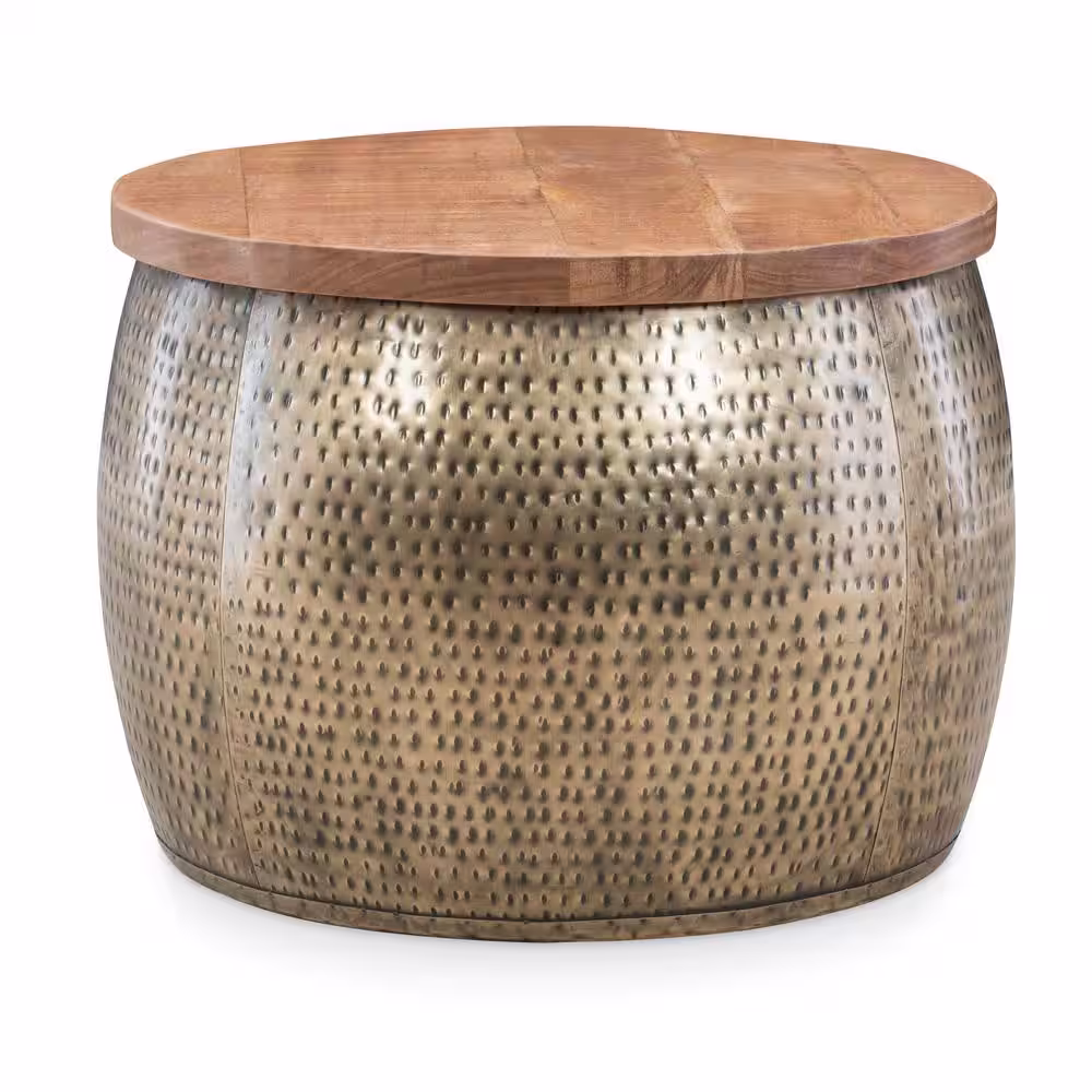 Powell Company Wagner 25 in. Brown/Gold Medium Round Wood Coffee Table with Lift Top