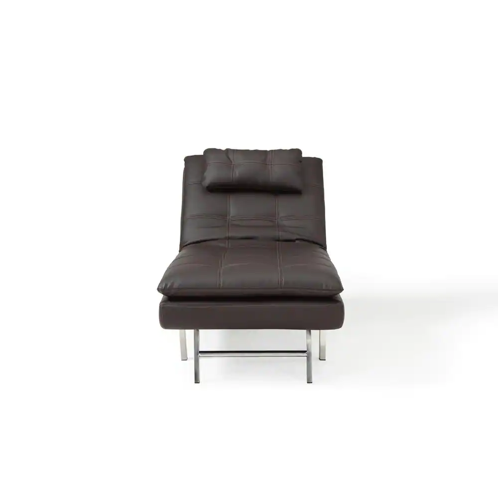 Relax A Lounger Arnold Faux Leather Brown with Tan Stiching Convertible Chaise Lounge
