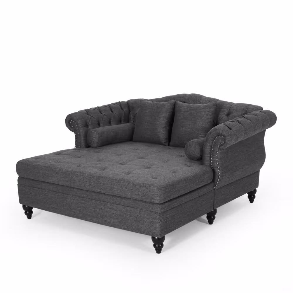 Noble House Sonne Charcoal and Dark Brown Tufted Double Chaise Lounge with Accent Pillows