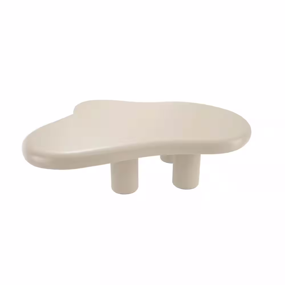 None 48.5 in. Modern Creamy White Medium Specialty Cloud Shaped Composite Top Coffee Table with Sturdy Four Legs