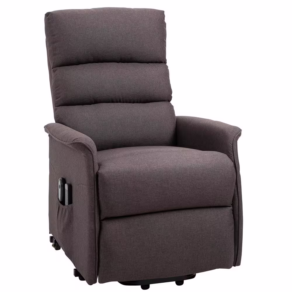 None Brown Polyester Power Lift Assist Recliner Chair