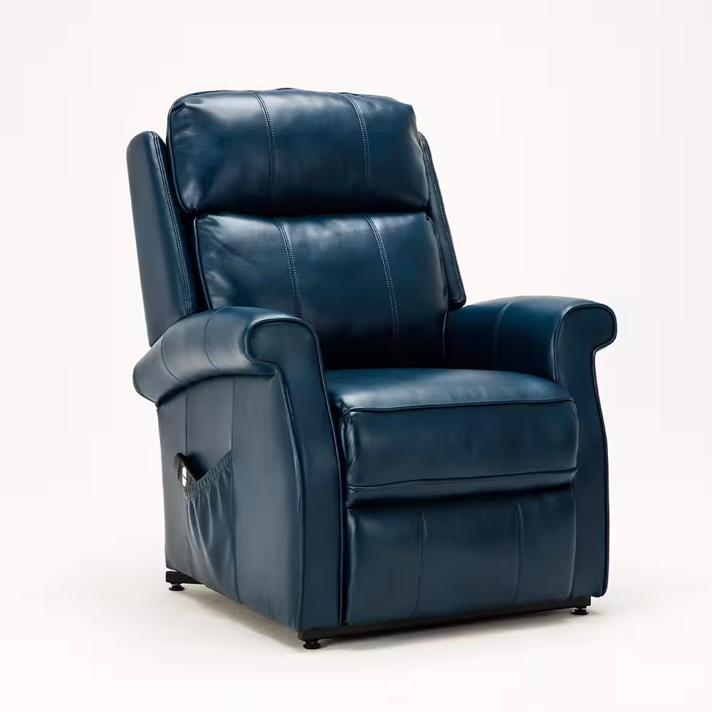 None Lehman 35 in. Width Big and Tall Navy Blue Faux Leather 3 Position Recliner
