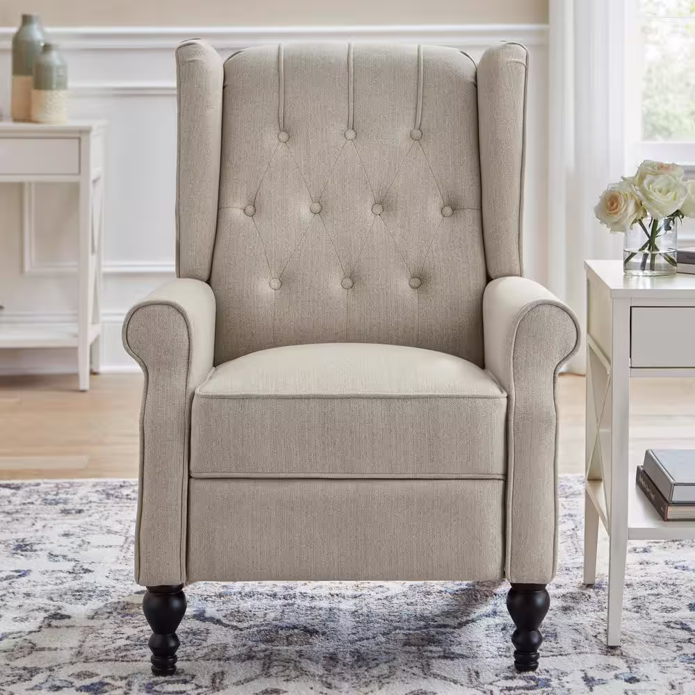 StyleWell Waybrook Biscuit Beige Upholstered Tufted Wingback Pushback Recliner