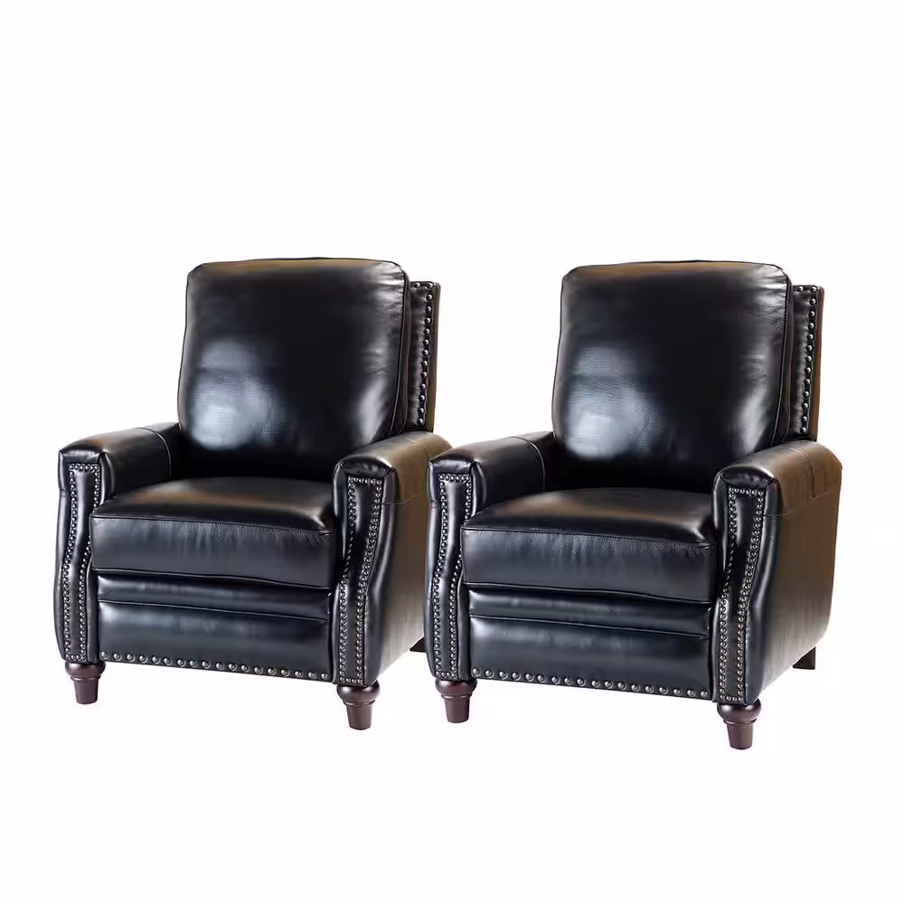 JAYDEN CREATION Theresa Comfy Black Manual 3-Position Cigar Genuine Leather Recliner with Nailhead Trim and Solid Wooden Legs Set of 2
