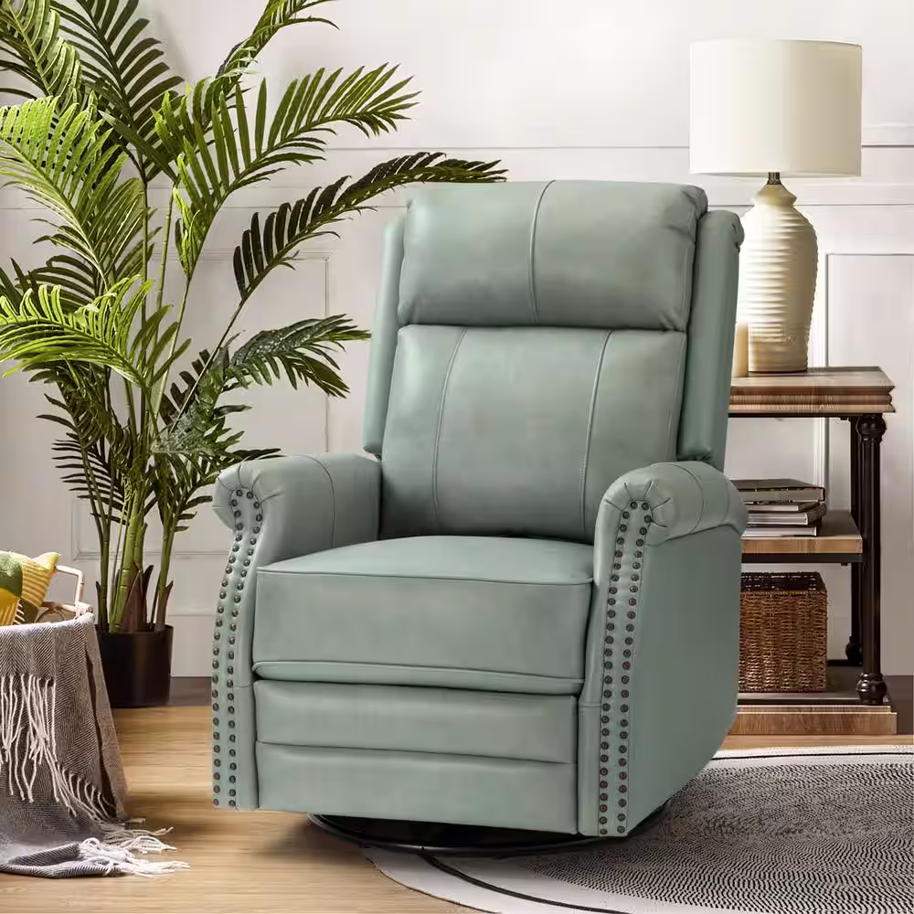 JAYDEN CREATION Sonia Transitional Sage 30.5'' Wide Genuine Leather 5-Position Manual Rocking Recliner with Metal Base and Rolled Arms