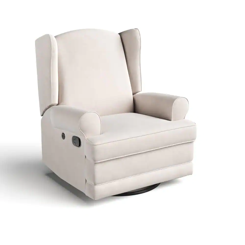 Storkcraft Serenity Ivory Wingback Upholstered Recline Glider