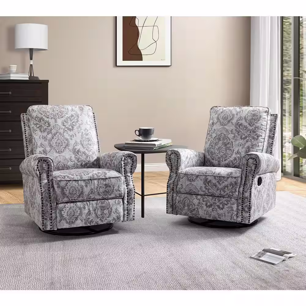 JAYDEN CREATION Orlando Traditonal Manual Livingroom Glider Rocker Nursery Recliner with Swivel Base and Nailhead Trim set of 2 - Beige