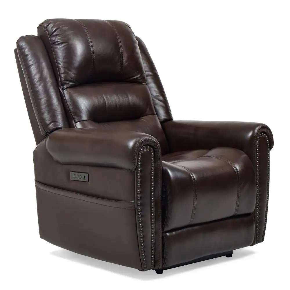 None 35.25 in. W Brown Genuine Leather Power Reclinr with Power Headrest USB Type C Charger