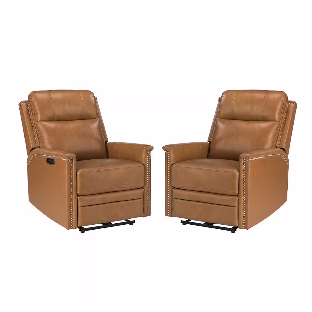 JAYDEN CREATION Valentino Transitional Camel Electric Genuine Leather Recliner with Nailhead Trims and Metal Base Set of 2